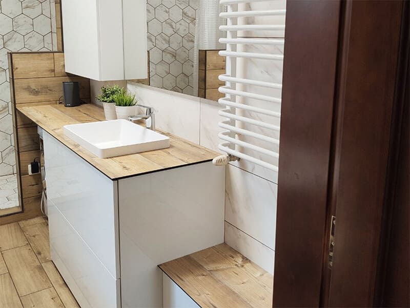 З об’єднаним дизайном меблів Ви отримуєте не тільки ексклюзивні меблі, а й швидку реалізацію Ваших побажань. Ми гарантуємо, що ваш сантехнік буде готовий до використання всього за 10 робочих днів. Зробіть свою ванну кімнату ідеальним як естетично, так і функціонально!